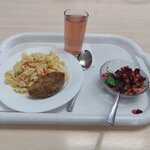 Уже в дверях ощущается приятный аромат, прохожу дальше небольшой уютный зал, негромко играет музыка, Ассортимент средний, заказала винегрет который немножко смутил своим состоянием и макароны с котлетой,котлета немножко горчила но приемлемо. Понравилось что все таки отношением к гостям, занавесками, музыкой, чистотой в зале стараются поддерживать уют, около заведения было много машин,точка хорошая, но обычному человеку не очень удобно добираться, далеко от остановки. По ценовой политике тоже все хорошо. Нужно подтянуть качество блюд и тогда можно спокойно ставить пять баллов. Можно добавить скатерти на столы, и следить за их состоянием показывая насколько рады гостям. Точка хорошая, позволяет сделать инвестиции пусть и небольшие. Если честно пока не вижу в нашем городе такой столовой, где будет уютно вкусно и по домашнему, поэтому часто сама беру еду из дома если кто знает напишите, буду весьма и весьма признательна,пусть и цены немножко дороже.