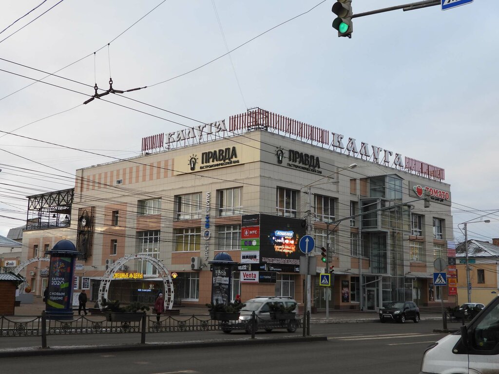 Хороший торговый центр “Калуга”, где можно найти множество магазинов и развлечений на любой вкус. Удобное расположение, рядом с автобусной остановкой. Есть парковка для автомобилей. Часто проходят различные акции и скидки. Рекомендую посетить этот торговый центр для покупок и отдыха.