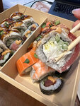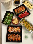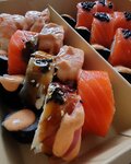 Это несомненно лучшие суши в городе . Ресторанная подача, много много начинки много рыбы и креветок. Коллеги до сих пор спрашивают где я заказывала такие вкусные суши