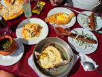 I give 5 stars only because it is very tasty here! After an unsuccessful trip to the "luck", we went here to eat every day. The trout and shrimp were delicious, and I also liked the pot of meat. Olivier liked it too. Homemade wine is awesome! BUT!! Management, please take action!!! The music is very loud (we couldn't hear each other), the microphones are whistling (I'm writing to you as a professional musician). Tell me, this is a musician, please, and the repertoire needs to be enriched with modern music and songs.