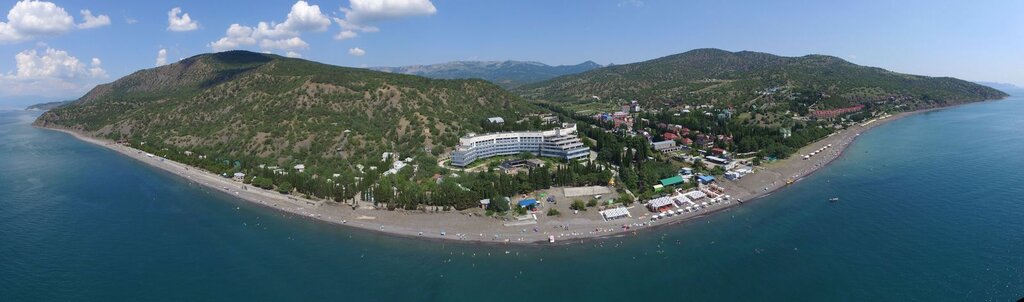 Отличное место. Море совсем рядом, правда вход каменистый. Домики, корпус. Но все немного уже подустало. Необходим ремонт и замена некоторых элементов - двери это точно. В душевой точно нужно заменить кран и сам душ. Плохой слив, унитазы немного подрасшатаны, у нас а номере не было уже зеркала в душевой, также держателя душа. Скрипят двери и они разсохлись, не закрываются. В общем и целом - необходима замена для комфорта. За территорией следят. Уборка, полив, вывоз мусора, много баков. Все чисто и красиво. Требуется освежить перила на так называемой набережной. Есть заброшки реальные на территории, особенно при выезде, портит вид совсем. Как итог - достойно, учитывая все сложности в Крыму.
