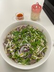 Приехал под закрытие , Надежда всё равно накормила Удивительная женщина эта Надежда , она одна за всех работает )) Очень гостеприимная, общительная , веселая ) Жаль том яма не было , но был фо бо и он оказался очень вкусный и огромная порция Вернусь обязательно Надежда , Тут случайно попал на бизнес ланч и был гипер приятно удивлён, он меня покорил , всё было Нуууу очень вкусно от фо бо до свинины с рисом с салатом и чаем зелёным Ставлю уверенно 5 с + Единственный микро минус это что нет чёткого понимания до которого времени этот самый топ бизнес ланч проходит Тут как повезёт. Надеюсь мне будет везти