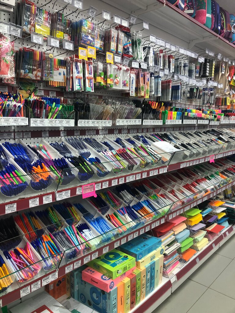 Огромнейший выбор канцтоваров . Всего очень много от ластика до разнообразных игр и портфелей. И не только. Светло чисто, добросовестный ответственный персонал.