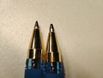 Купила две ручки одинаковые ручки "mc gold". Каким же было удивление, когда после приобретения выяснилось, что стержни там стоят совершенно разные - разной толщины, один из них очень толстый (на фотографии видно отличие), отличается даже оттенок чернил. Жаль, что не взяла чек. Данные ручки покупаю много лет, и ещё никогда не сталкивалась с подобным качеством товара. Очень жаль, доверие к магазину утрачено