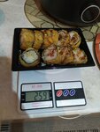 I ordered a tempura roll in a Capybara with pickup. I came home , opened it, and was surprised. I haven't seen this for a long time. The rolls are cut as thick as boiled sausage, about 1 cm thick))) only two pieces were as expected, which, in fact, caught my eye. And so there was an immediate desire to weigh this creation. In the appendix for this position, the net weight of the roll is stated at 280 g, and on the scales together with the container is 259. Well, I see. In short, they CHEAT ON WEIGHT in Capybara . Unexpectedly, but a fact, I will attach a photo. And they also put the cores, you know, which in normal establishments are cut off from the edges, but here they put a piece of rice cleanly without filling. There was a feeling that capybara takes care of its reputation and monitors the quality of the goods (this has never happened in Hippo), but I was deceived in Capybara in Euroopt (Moskovsky 130 , near the Mainland. I was too lazy to go back purely because of the bad weather. It tasted fine, but the sediment remained. I won't go there anymore, you Liars!
