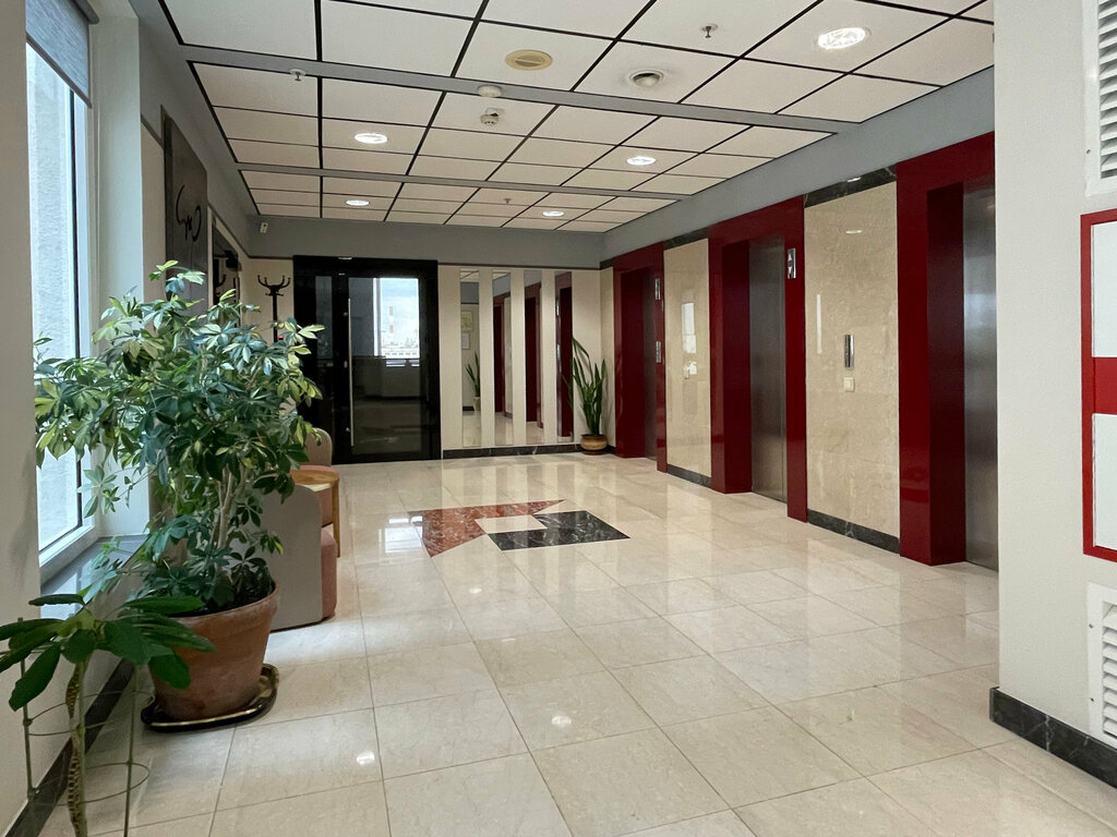 Далековато от метро, но есть большая парковка, куда можно заехать по заявке. В нулевые это был крутой центр и ремонт тоже, сейчас это весьма old fashion, особенно потолки Армстронг выглядят убого. Отличные лифты, на 8-м кафе, в принципе, неплохое. Народу немного, первый этаж под банк пустой. В целом, твердая 4.
