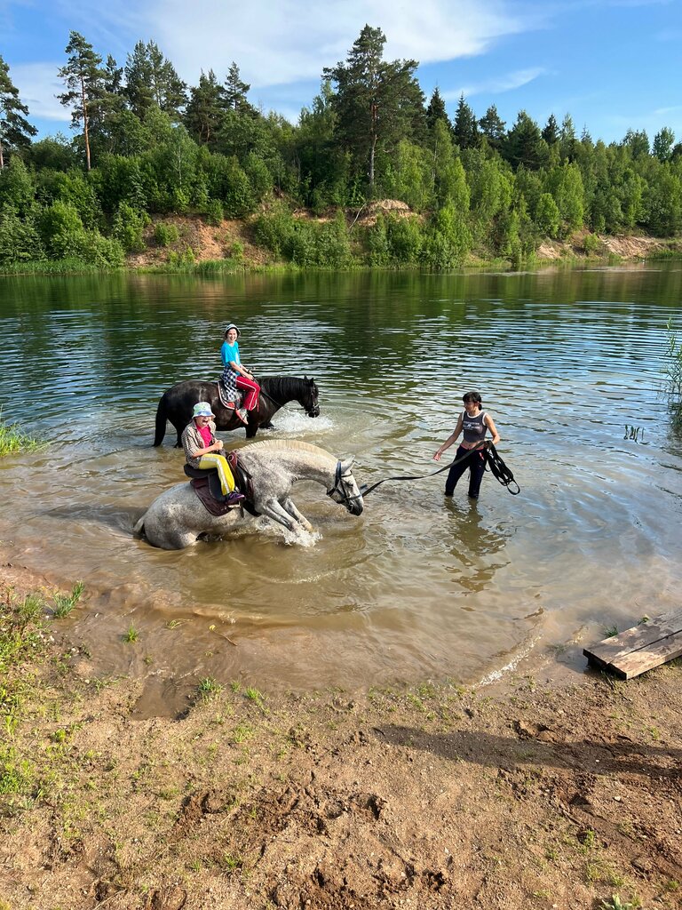 Чудесное место! Были уже 2 раза и приедем еще! Сразу как приехали-нас встретили чудесные собаки, козел Инокентий (это не описка). Сами лошади чистые, ухоженные, у каждой своя история. Очень интересно! Хозяйки лошадей прекрасно знают все тонкости здоровья лошадей, действуют в интересах лошадей (предложили альтернативный маршрут, чтобы не мучать лошадей под солнцем в компании кровожадных слепней). Это все очень подкупает. Желаю расти и развиваться!!!!