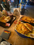 We walked past this cafe every day. The waiter constantly lured us, but we refused. On the last day, we decided to come in and regretted that we did not do it better. First of all, a very pleasant waiter. The prices are low. We ordered a burger and potatoes out of habit, focusing on portions in Moscow. We need to bring a bucket of potatoes and giant burgers, which were accompanied by potatoes and ketchup in addition.. unfortunately, we did not touch a separate portion of potatoes. I wanted to try the whole menu. The place is cool, do not pass by👍