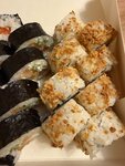 Первый раз заказали роллы в этом месте. По вкусу претензий в целом нет, можно покушать, если очень хочется. Но сначала ты видишь еду и ешь ее глазами. Если бы я не пробовала вкус, то была бы вообще единица. Внешний вид оставляет лучшего. Роллы разного размера между собой да и если смотреть на одну роллу, то она широкая с одной стороны и узкая с другой. Какие то роллы вообще треугольные, но вряд ли это такая задумка ибо это не красивый треугольник, а просто нож так взял, наверное Посыпка тобико неравномерная настолько, что думается, что икра попала туда чисто случайно, а не является частью ролла. Можно ли заказать еще раз? Да Но закажу ли я еще раз? Нет