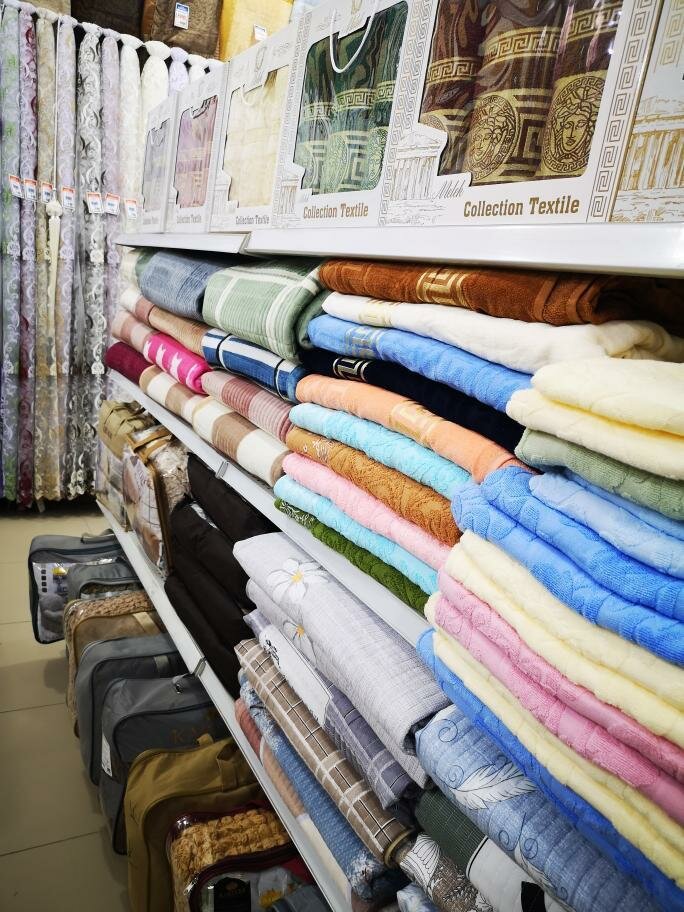 Большой выбор качественного постельного белья и красивых штор. Хорошие скидки . Впечатляет выбор , находится в центре города. Большой магазин «караван» .