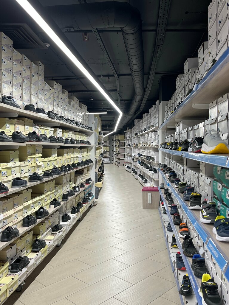 Магазин не очень большой, по сравнению с другими. Первое, что бросилось в глаза - отсутствие консультантов. Всего 2 человека, которые должны и на кассе быть и консультировать. При нахождении в магазине надо быть аккуратным, есть и ступеньки вниз и ступеньки между залами. Мужская обувь представлена каким-то скудным ассортиментом. Ценники отсутствуют на многие товары, приходилось через приложение сканировать и узнавать цену и тратить на это время.