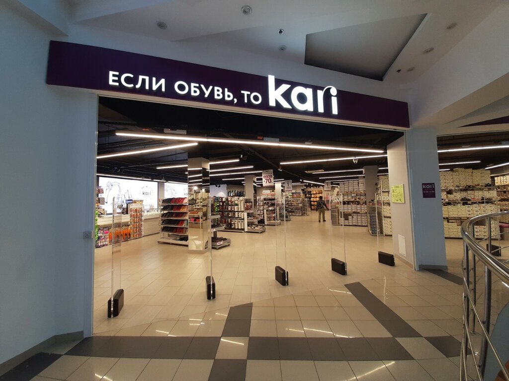 Сам магазин огромный и прекрасный, большой выбор. Имеется: и обувь, и украшения, и аксессуары, и посуда. Качество обуви очень расстраивает. Купила ботинки 16 декабря, а 25 марта отклеилась подошва в дороге. Это был ужас ! Обувь изготавливают строго на срок гарантии !!! Это уже в который раз! Не хватает даже на сезон. Покупала со скидкой по бонусам "Кари" и + бонусы "Спасибо". Р.S. Я написала вам письмо с описанием ситуации и фото приложила, но ответа так и нет. Не думаю, что , если я привезу ботинки в ТЦ, мне предложат замену. Это происходит уже не с первой парой. Подошвы хватает на 90 +! дней.