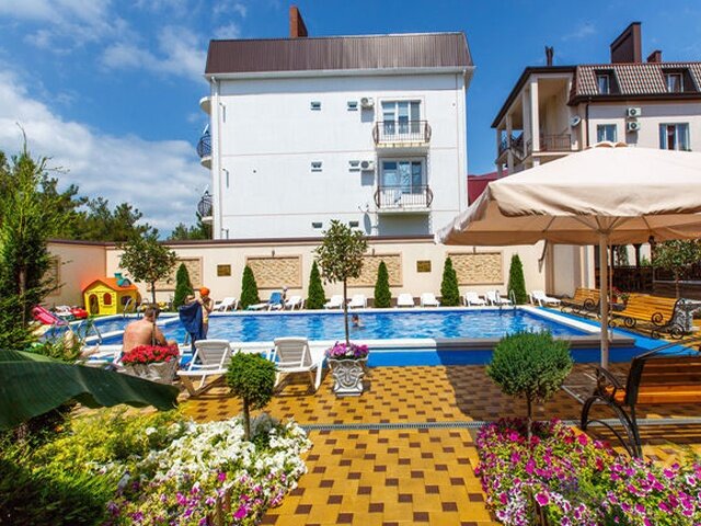 отдыхали здесь в 2022м году,очень радушные хозяева,хорошие номера по приятной цене ,все чисто аккуратно. на первом этаже своя столовая с прекрасной кухней,мангальная зона,бильярд,бассейн всегда чистый. также был трансфер до бухты и обратно в определенные часы,недалеко есть магнит круглосуточный. спасибо большое мы очень хорошо провели у вас время)
