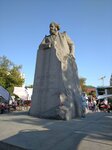 Памятник хотели поставить ещё в 1920 году, даже закладную табличку соорудили. Но поставили только в 1961-м, к XXII съезду КПСС. Автор - Лев Кербель. Известного экономиста и автора теории о прибавочной стоимости вырубили из цельной гранитной глыбы массой 160 тонн...