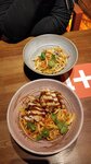 еда, интерьер, персонал-всё было на высоте!! из еды брали: курицу кунг-пао (супер насыщенный вкус сочной и нежной курочки в соусе), дим саны с курицей(интересная подача, очень стилёво и аутентично, по вкусу немного специй не хватило, но соуса, которые подавались с блюдом всё исправили), лапшу с цыплёнком (хорошая лапша, ничего плохого сказать не могу), и конечно карамельную калифорнию(я готова душу за неё продать, это было лучшее, что я вообще попробовала) из десертов взяли чизкейк с клубникой, опять же удивила подача(фото нет, но вы представьте в голове). десерт выглядел не так, как мы привыкли его видеть(кусок от целого торта), а в аккуратной маленькой пиале в виде йогурта¿¿ не могу точно описать, но вкусовые рецепторы были просто в восторге! из напитков брали два алкогольных коктейля(лавандовый джин и карма +1)и чай(потрясающий!!!) чек вышел за всё 3955₽, считаю, что сумма абсолютно оправдана! спасибо за атмосферу, обязательно приду ещё раз!