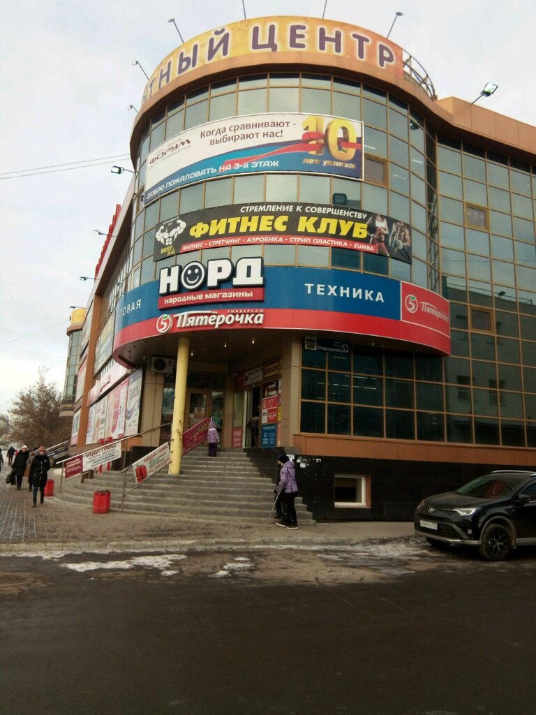 Очень маленький. Во всем комплексе тренажёрка, батуты, пятёрочка и еще пара отделов.