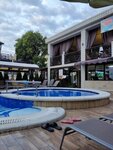 Красивый четырехэтажный отель, ухоженная территория, с первого взгляда восторг. Но, три больших корпуса, и один бассейн, к которому нет нареканий, всегда было чисто, а вот с лежаками беда! Их катострофически не хватало, доходило до ругани, ни на секунду отойти нельзя, только отвернулся на твоем лежаке уже кто-то отдыхает! И это большой минус. Столовая на цоколе, вполне себе нормальная, большой выбор блюд, все было вкусно цены как везде. Заявленная парковка всегда занята, так что если вы на машине, то сразу ищите где оставить машину. Дороги узкие все вокруг заставлено машинами, найти свободное место-целый квест. В отеле есть лифты, за отелем есть генератор, если отключат электричество, то в принципе у вас в номере свет будет, но если вам не повезло с расположением, то будет ещё и шумно. Генератор стоит за 1м корпусом. Имейте в виду, когда будете бронировать. До моря не далеко, минут 7-10. Бар возле бассейна, тоже очень приличный, цены не задраны, такие же как везде. Есть и напитки и мороженое, пицца, завтраки, все супер. В номерах уборка только по просьбе, смена полотенец и белья тоже только по просьбе. Вообще отель рекомендую.