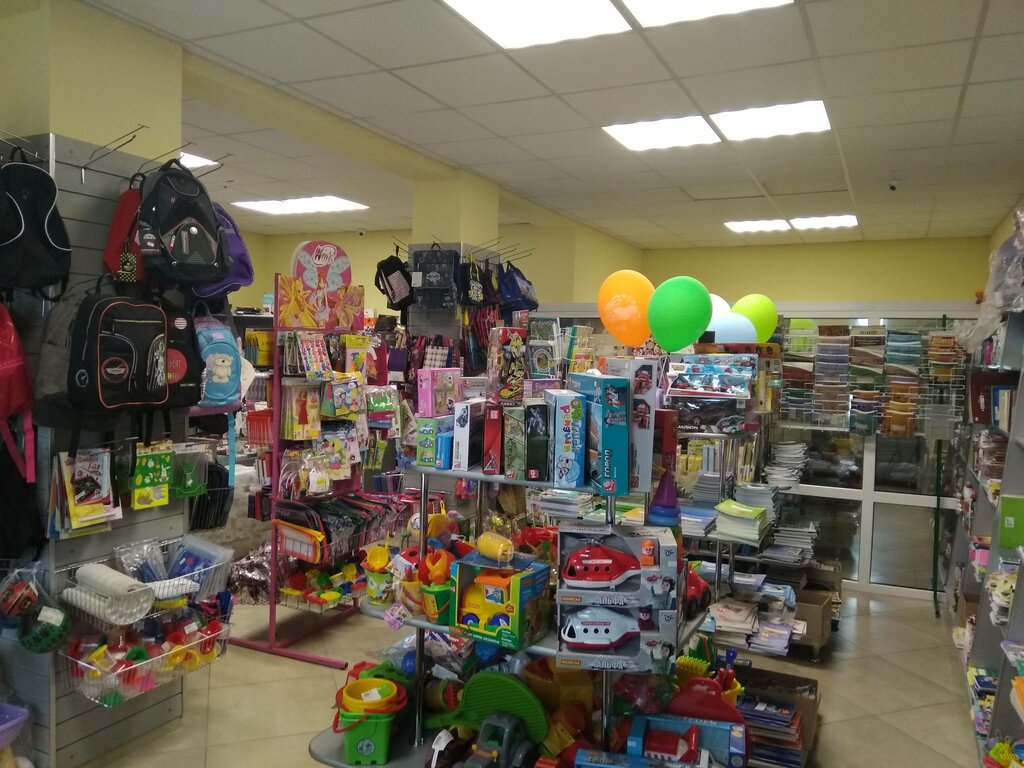 This store has everything from plastic to a school backpack, and more. You will find everything here at once. Sellers will always prompt and help with the choice. You can also refuel the printer here, and inflate balloons with helium. There is a large parking lot nearby.