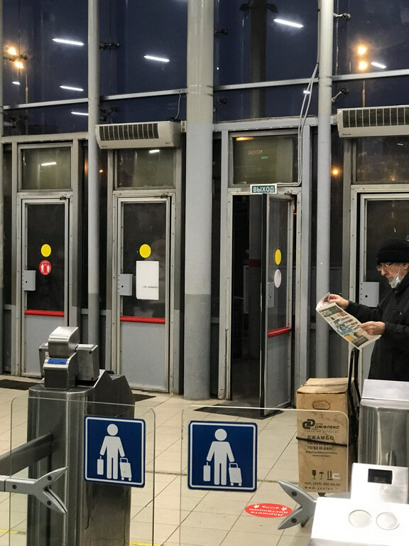 Уже конец ноября двери все раскрыты на распашку обогреватели не работают ужасное место для ожидания электрички! 🤷🏼‍♂️ присеять не где табло оповещения электричек давно бы уже поменять на нормальное!!!!