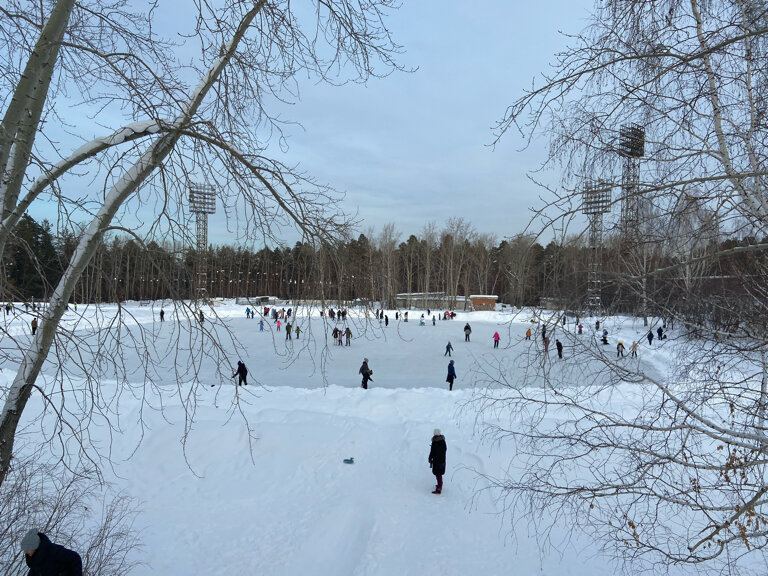 сам каток чистится не так часто,как хотелось бы. Сервиса никакого,хотя можно было бы организовать зимний досуг для города и зарабатывать на этом(горки и делать не надо,оснастить только бубликами на прокат)Люди пойдут,ведь у нас совсем некуда в пешей доступности сходить зимой. Разлив далеко.поставить кофейню с горячей выпечкой.Но самое главное,терминал для платежей,ведь с наличкой сейчас не каждый ходит.