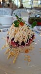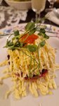 Гинза в этот раз разочаровала. Официанта пришлось звать - никто не подходил принять заказ. Красивые девушки улыбались, кивали, но не подходили. По еде много вопросов. Заказала бифштекс. Насколько мне известно, блюдо от слова «биф» - говядина. Ни на вкус, ни на вид говядины в этой котлете не было. Сухое, невкусное, и как выяснилось - из свинины. Нарезка Оливье поразила - крупные куски, почти огромные. Овощи безвкусные, что картошка, что морковь - никакие. Вкусные были только раковые шейки. В салате с крабом одно яйцо голое, крабы едва-едва угадываются на вкус. Холодец вкусный. Но на этом все. В общем, очень так себе. Больше не вернусь точно.