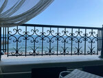 Плюсы- расположение, вид на море, чисто, есть вино Инкерман, обслуживание хорошее Минусы- кованый забор и вид на море получается через него, чебурек невкусный: мало мяса, нет терминала для оплаты картой, меню распечатано на принтере ))