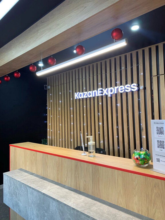 Казаньэкспресс один из современных пунктов выдачи, внутри всегда чисто, есть все удобства для проверки заказа и ножницы и урна, и даже есть куда сдать батарейки, последнее время там работает очень приятная девушка виктория, всегда доброжелательна, отвечает на вопросы и помогает, так же тут есть бесплатные фирменные пакеты разного размера