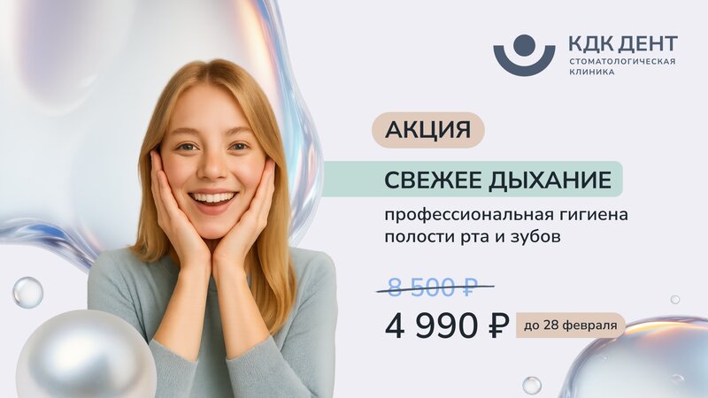 В клинике КДК Дент проходит акция: удаление постоянного зуба (кроме зуба мудрости) за 6 990 ₽ вместо 10 000 ₽. Процедура проводится опытными хирургами с применением современной анестезии и оборудования, что делает лечение максимально комфортным.