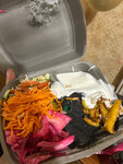 Брали в пите, очень много зелени и салата, немного мяса, из питы все вываливается. Соус на 3 Огурцы пожухлые. Не советую.