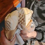Владелец заведения очень любит экономить на лавашах, которые по вкусу как кусок сырого теста 🥹 Раньше всегда делали в цветных, они и по вкусу приятные, и по текстуре. Новые работники не умеют нормально заворачивать, снизу огромный толстый кусок лаваша, сверху тоненький и разваливается, по бокам тоже. В общем дорабатывайте :(