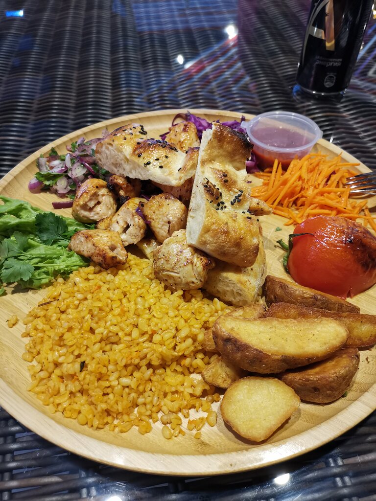 Отличное место покушать, месторасположение очень удобно, есть терраса на улице, есть внутри достаточно много места, персонал приветливый, готовят быстро и красиво, но самое главное что очень вкусно, кушаем с детьми там, есть где руки помыть, есть туалеты, в общем абсолютно рекомендую к посещению! Обязательно попробуйте шаурму и кебаб.