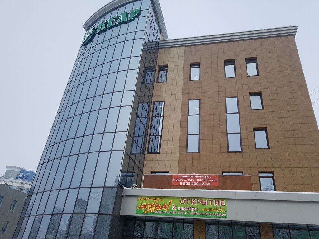 Часто бываю в торговом центре Кедр . Удобное расположение , современный дизайн центра , удобный съезд/подъем для колясок и пожилых людей . Посещаю в центре Магнит и Магнит косметик . У входа остров с приготовлением блюд навынос. Кофе островок . Территория около центра всегда чистая .