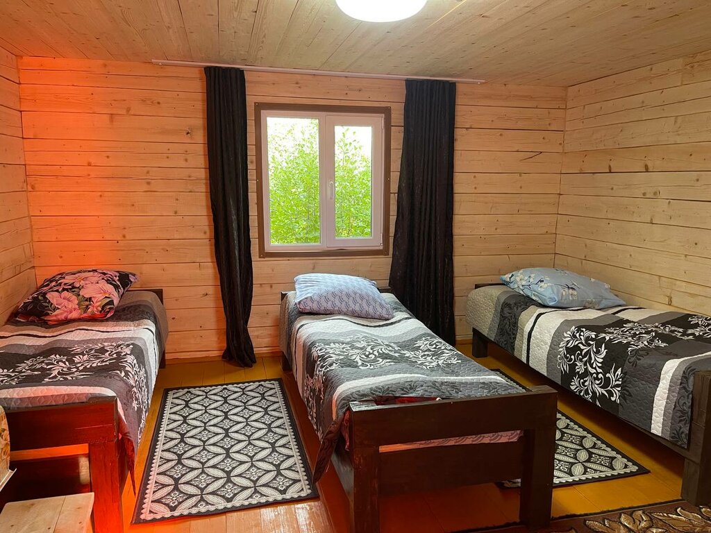 База больше расстроила. Снаружи выглядит симпатично, рядом течёт ручей. Тихо. Мы проживали с 18-21 августа в домике на четверых человек. Четыре односпальные кровати.связь здесь ловит плохо, в домиках не ловит(мегафон). WiFi работает только под окном хозяев и медленный. Хозяева не общительные. Зато в один из дней приехал их начал в 8 утра мыть машину керхером прямо под окнами, выспаться не дал. Домик был без всего: ни тебе мыла, ни полотенец, ни стола в комнате. Розетка на всю жилую комнату всего одна(!!) в которую воткнут тройник. Приходится в него включать и обогреватель и холодильник и зарядку для телефона. Чайник в него включать не рискнул. Зато есть совершенно бесполезные две тумбочки. Прихожая (коридорчик ) перед комнатой без двери, здесь же (фактически на улице) комната туалет с душевой кабиной, без обогрева, зато висит фен. На минуточку: температура утром и вечером здесь не превышала и 6 градусов. Зачем делать открытую веранду и ставить там чайник, кресло, столик? В шубе сидеть и пить там чай?? Однако! Походы в туалет и душ стало экстремальным занятием(очень холодно). В самой комнате обогреватель, правда есть. Но стола ,где попить чай с пирожком нет! Хозяева данной базы не особо позаботились о своих гостях, совсем им не рады. Баня убогая, даже не побелена внутри, вода в баках и ведрах, хотя с водой там проблем нет. Почему бы не поставить кран с водой? Никому не советую. Соблазнились более низкой ценой , но здесь она явно завышена.