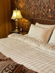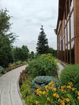 Ночевали дважды окт-нояб 24 г. в 201, 205 номера. Сначала минусы. Матрасы нужно менять в 205 жесткий как кирпич, в 201 мягкий как вата, вдвоем спать не вариант. Матрасы нужны средней жесткости, ортопедические. Для цены в 13,5 к за номер как бы такой матрас подразумевается. Для сна это главное, а как понимаю там в основном путешественники транзитом на одну ночь поспать. Подушки ок, не знаю есть ли ортопедические, не спрашивал, но не помешали бы. Ночью за окном шумно, все номера, а их там всего вроде 7, выходят на трассу. Окна не открыть, кондиционер есть, но он тоже шумит, свежего воздуха из за специфического запаха дерева не хватает. Может ограждение от шума трассы поставить? С вентиляцией тоже вопрос не понятный, есть она там или только кондиционер, так и не разобрались. Очень крутая лестница на 2 эт, где номера, с большим чемоданом подняться проблема, иногда помогают поднять иногда нет. Пандуса на центральном тоже нет, но водителю респект- занес в гостиницу. Теперь плюсы: близко от аэропорта (кому транзит, как нам самое то-3 мин) трансфер от отеля до аэропорта по требованию в любое время дня и ночи, прям респект, очень комфортабельный микроавтобус, водителю еще раз спасибо, помогает с багажом. Сами номера современные, большие, все есть, в ванне полный набор, халаты, тапочки- вопросов нет. Нет мыльницы для мыла, некуда положить открытое мыло. Очень красивая облагороженная территория. К персоналу тоже вопросов нет, очень внимательный. Ну и самый плюс- это ресторан. Как понимаю, все заточено под ресторан и большой конференц холл для банкетов, специально едут с города. К ресторану вопросов нет- цена- качество на уровне, все очень вкусно и стильно. Большой выбор мяса, стейки сухой выдержки, это прям 5+, рекомендую. Пиво свое тоже достойное. Выбор вин огромен. Вообщем минусы не для того чтобы раскритиковать, а чтобы провели работу над ошибками, видно что в комплекс вложено очень много, и средств и времени и внимания, но некоторые мелочи которые недорого исправить, портят общее отличное впечатление. В целом рекомендую к посещению.