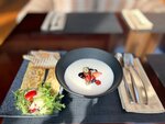 Интересное место. Красивая территория. Парковка с местами для инвалидов, детский городок. Заезжали в ресторан. Уютно, красиво спокойно. Можно забронировать столик бесплатно по телефону. Были летом - предлагают террасу почему-то. Минус большой душно. Нет вентиляторов, мухи пролетают. Кухня интересная, оригинальные соусы и заправки. Красивая подача блюд. Официанты ненавязчивые. Музыки днем нет. На день рождения подают красивый десерт. Вот только десерты и коктейли сладковатые. И были в недоумении, когда попросили стакан обычной воды, выяснилось в месте, что принесли воду по стоимости дороже, чем 0,5 пива??? Но зато чаевые не попросили в этот раз