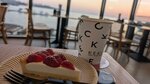 Заведение понравилось своей атмосферой. Уютно разместились за столиком с видом на море - огромный плюс панорамных окон! Хотелось согреться в пасмурный дождливый день. К сожалению, капучино был не горячий, а теплый 🤷🏻‍♀️ , к американо не подали воду. Вода только брендированная за отдельную плату. Десерт удивил визуально ) вкусный лимонный тарт, но порция огромная 🙈 круассан был свежим, ребенок оценил. Официант достаточно быстро принял заказ, убавил мощность кондиционера по нашей просьбе +. При нас была полная посадка зала, но в принципе время ожидания столика приемлемо. Можно взять напитки и перекус с собой. Остались довольны посещением.
