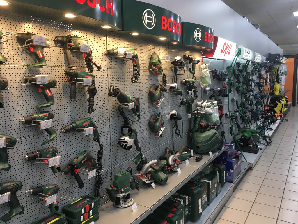 Большой выбор электроинструмента, насосного и компрессорного оборудования, а также различных метизов.
