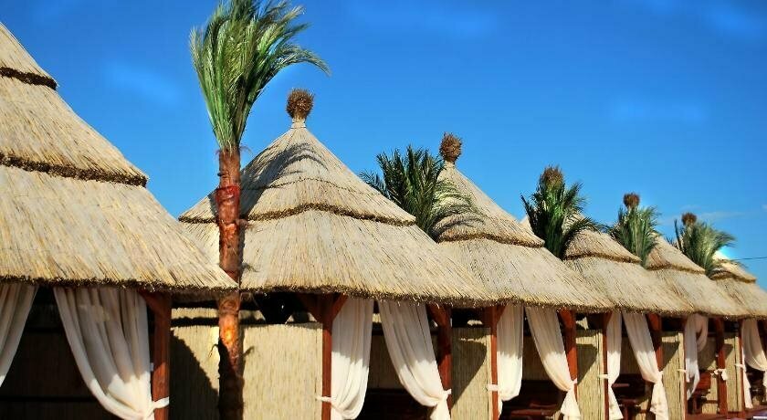 Excellent pools, lots of sun beds, there is a bar in the center, a kitchen on the side)