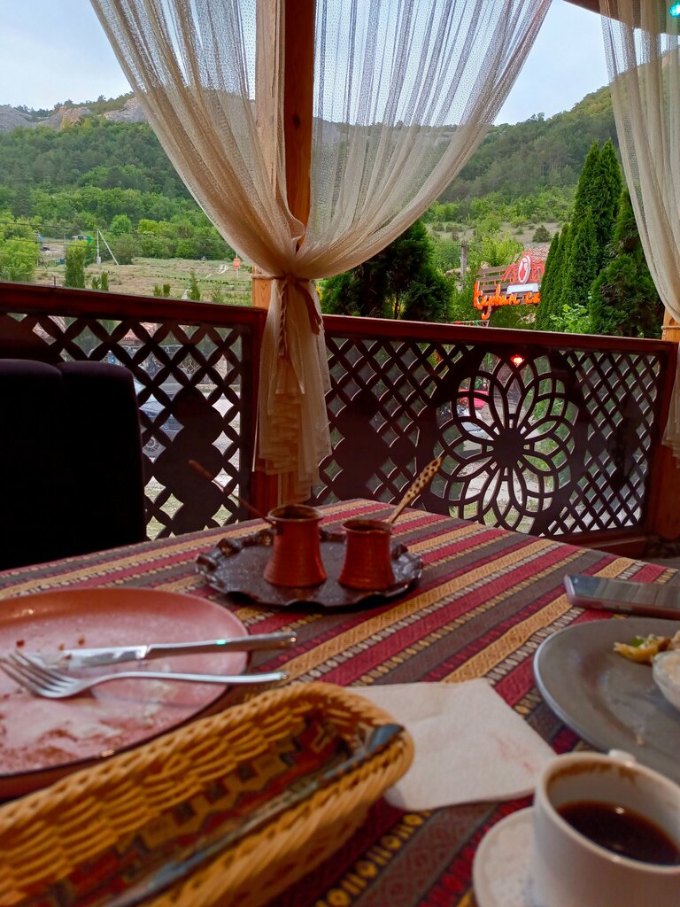 Сегодня побывали в этом чудесном заведении и мои впечатления - более, чем приятные. Погода, природа - это само собой) удобные диванчики, пледы для клиентов, все очень вкусно, красивая подача, даже пришлось с собой забрать часть еды, ибо накормили досыта. Официант-умничка, к сожалению, не спросили как его зовут. Как только припарковали машину, не знали в какое именно заведение пойдем обедать и тут нам навстречу из своей машины выходит седовласый обаятельный мужчина и приглашает либо в горы прокатиться, либо в Керван-Сарай покушать🤗 как будто он именно нас встречал!) вот что значит вовлеченность👍 и спасибо ему, что вот так случайно познакомил нас с этим потрясающим заведением.