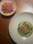 Хостес на входе отсутствует, в гардеробе полный хаос - все вешалки валяются, их никто не подбирают, другие люди могут поронять все куртки и никто за этим не следит совершенно. Обслуживание отвратительное, официанты долго не подходят, постоянно меняются, принося заказы. Персонал недоброжелательный. Качество еды среднее, с ценником не соотносится. Карбонара очень странная, разваренные макароны, соус вязкий. Уборщица как будто полностью отсутствует, при входе очень грязно. Только чай вкусный