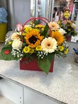 Вот такую красивую композицию купила в этом салоне цветов. Покупаю уже не впервые и всегда все свежее, ни разу ещё не подвели. Флорист с чёрными волосами, в очках, всегда очень вежливая и приветливая, всегда подскажет, какие цветы лучше брать, работает очень быстро. Спасибо руководству за такое отношение к работе и к клиентам, вернусь к вам ещё не раз.