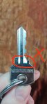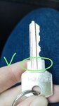 Как оказалось, что ключ изготовил не правильно, то-ли не правильно выбрал заготовку, то-ли не правильно сточил уступы (отметил на фото о чём речь, на оригинале они наоборот находятся), но в итоге просто испортил заготовку и сделал не пригодный ключ (по сути он по рабочей длине не совпадает)