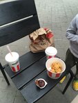 Ужас. Вы серьезно? Заведение, которое на территории аэропорта имеет перерыв? При условии что это единственное подобное заведение с быстрым перекусом? Плюс ещё и грязно, к полу прилипнуть можно. Я пришла сюда после перерыва, заказала чизбургер де люкс, получила обычный..картофель пересолен настолько, что постоянно приходилось запивать его.
