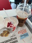 Приготовили отвратительный кофе, без льда, на вид также не соответствует. Беру айс кофе в ростикс уже не первый раз но такой ужасный впервые. Мороженое сначало не то отдали, а потом исправились и дали нужное, но вид его довольно печален, грязный стакан отлитый джемом и пол стакана наполнено, вообщем ожидание реальность далеки друг от друга. Парень на кассе с недовольство видом пытался объяснить что так и должно быть и что льда нет потому что кофе горячий🤔🤦‍♀️