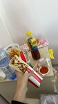 potatoes are tastier here than in Almaty)) the service is excellent, the screen with the correct order numbers, the chicken is on fire)