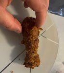 On 28.03, at about 1.05, I ordered 5 sharp wings and 2 legs. I am very disappointed with the order and the attitude of the staff. The manager (the girl) behaved incorrectly, was rude, and showed hatred for the guests. After I came home and opened the order, I saw not a ready-to-eat product, but burnt breadcrumbs. The breadcrumbs were made of stone and smelled of burning. There is a leg in the attached photo.