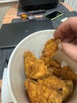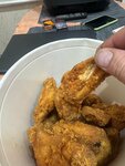 I placed an order on 19.01.2026 at 21:48 for a bucket of 24 wings… He asked for fresh ones… They said 20 minutes of waiting… I picked up the order and 20 minutes later, when I arrived home 15 minutes later, I saw these wings... dry as breadcrumbs ... obviously not fresh.… Solid... why! Do that? I'll have to write to the complaint book.… And for a moment… The cost is 41p. The equivalent of $14... for what?
