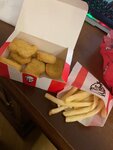 What kind of fu is this, the quality of service is -5, the quality of products is -5, I took 5 for 5p, at first they gave everything in one package, the potatoes scattered all over the package and they gave the order like that, I asked them to fix it-they changed, but the potatoes became much smaller, the potatoes were immediately cold and not at all crispy and without a drop of salt, more, one of the photos shows their advertising banner, look at what kind of AI-Twister there is and look what I got, some kind of hot dog, the size of an index finger, absolutely without any sauce, 30 grams of potatoes and 6 funny nuggets. It's just terrible. 0/5