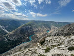 Была в мае 2023г. Есть несколько площадок для просмотра каньона с высоты птичьего полета. Но основная, конечно, захватывает дух. Площадка огорожена забором, вид неописуемый... Ты находишься на такой высоте, где орлы летают ниже тебя, ты смотришь на их спины и это удивительно. Из всего Дагестана этот вид меня вдохновил больше всего!!! А вода в каньоне действительно бирюзовая!