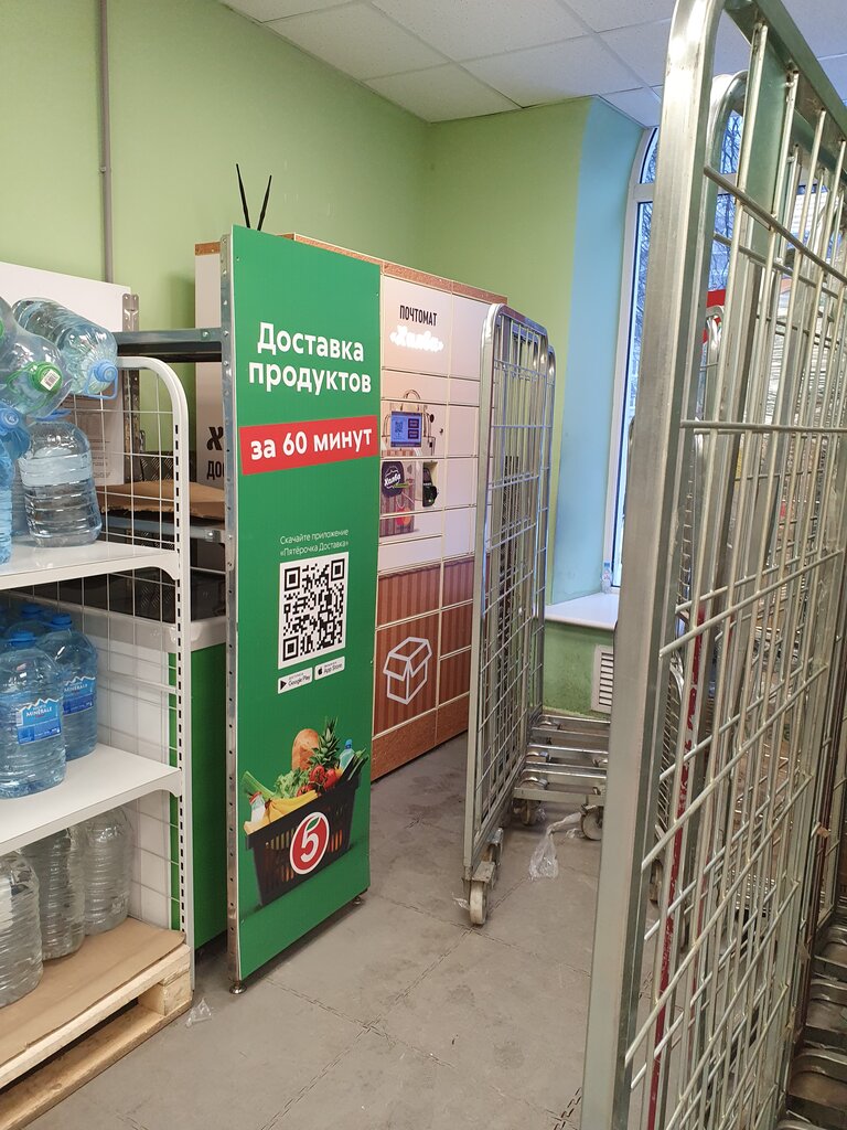 Сам постомат отличный — удобно получать посылки. Но сотрудники Пятёрочки позволили себе забаррикадировать подход к постомату грязными стеллажами. Из-за чего практически невозможно получить посылку.